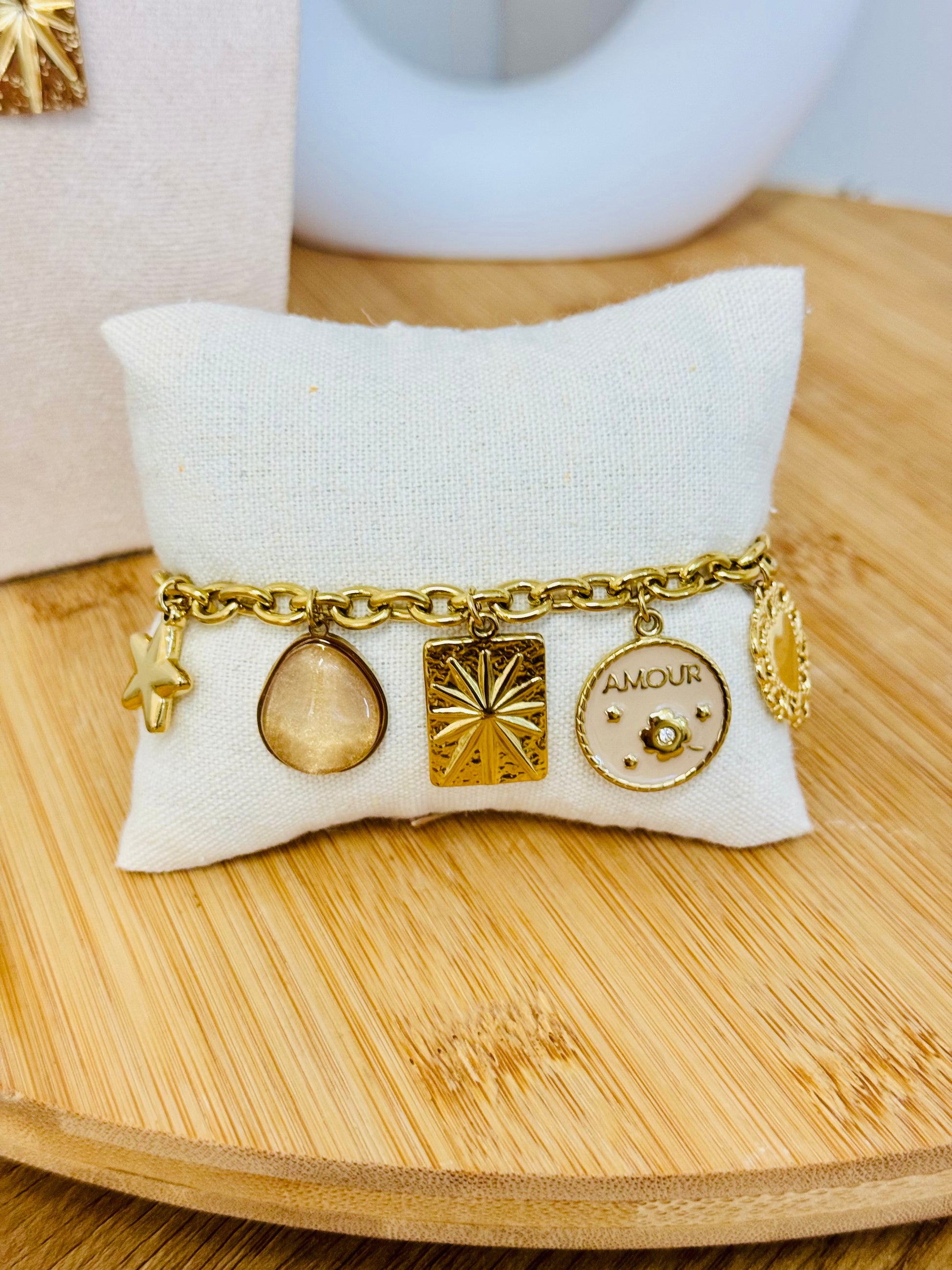 Bracelet breloques en acier inoxydable, à la fois raffiné et résistant.