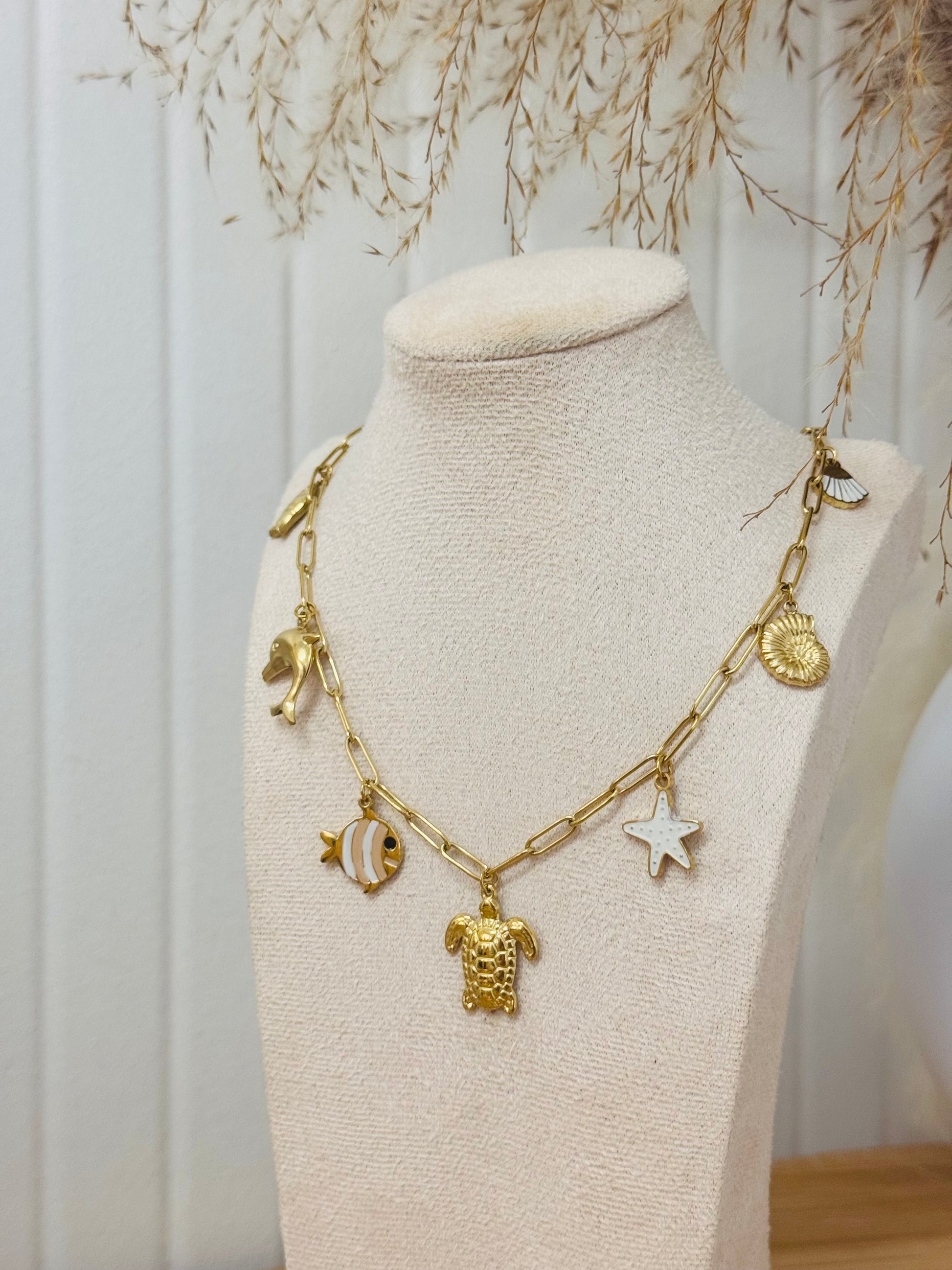 Collier breloques tortue en acier inoxydable, à la fois raffiné et résistant.