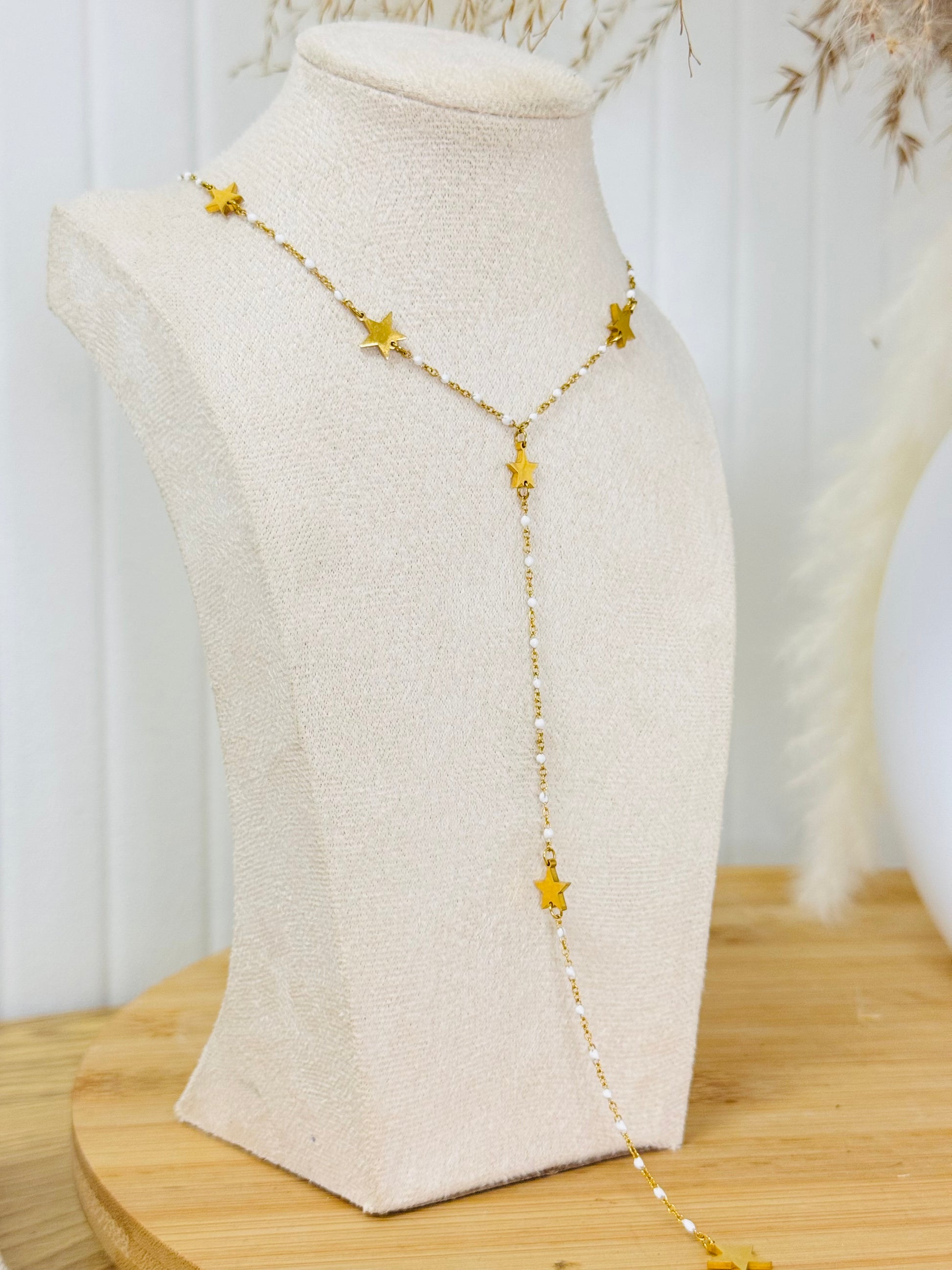 Collier perles blanche étoiles